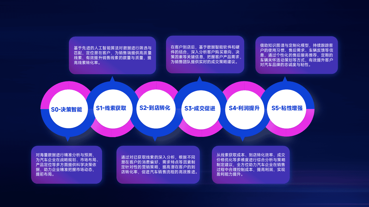 通过拓宽潜在客户来源、、优化线索分配并提高到店转化率,,以增强销售效率。。。。同时,,利用线索数据不断优化分析模型,,,,有效提升转化率,,,扩大营销影响力。。